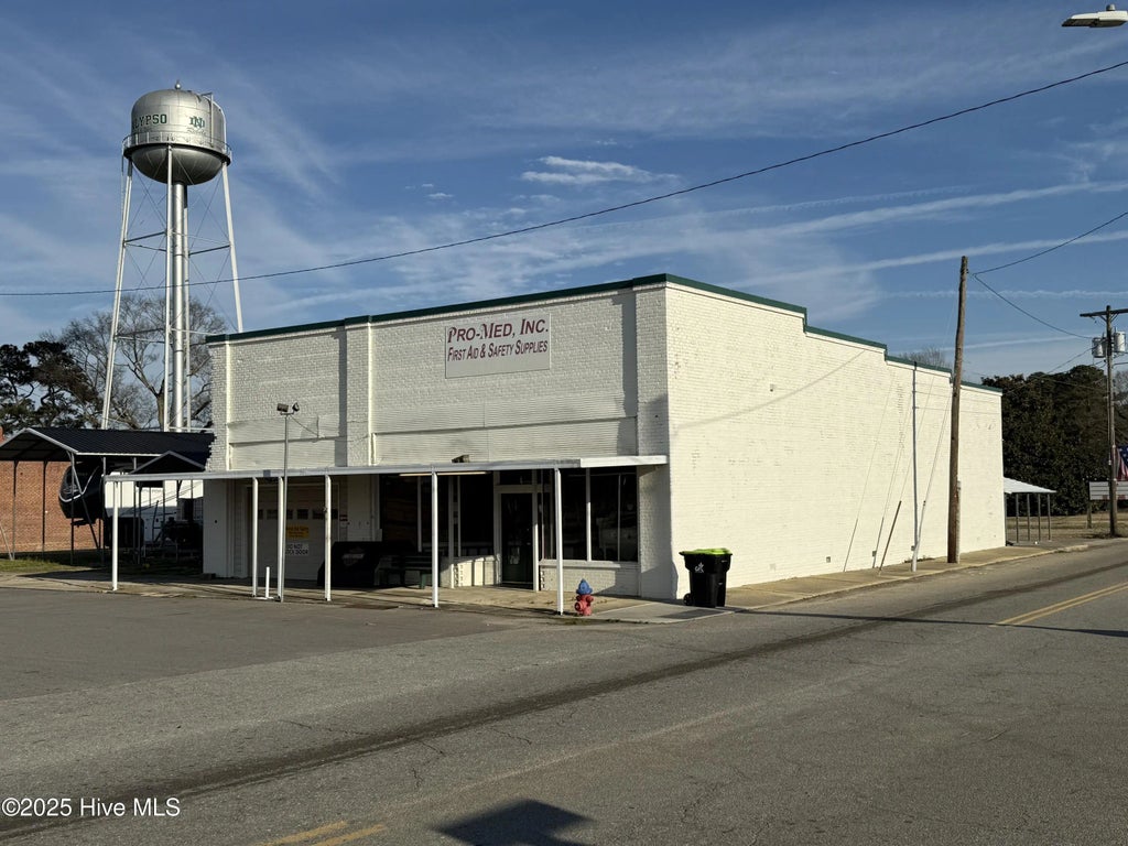 3,600 sq. ft. commercial building located on a very visible corner lot. Also includes a large side and rear lot which makes it great for many different uses. Metal awning covers the front by the sidwalk. Building was remodeled some years back with lots of improvements including wiring, plumbing and a rubber-membrane commercial roof. Would make a great place for retail or service related business. Call us today for a showing!