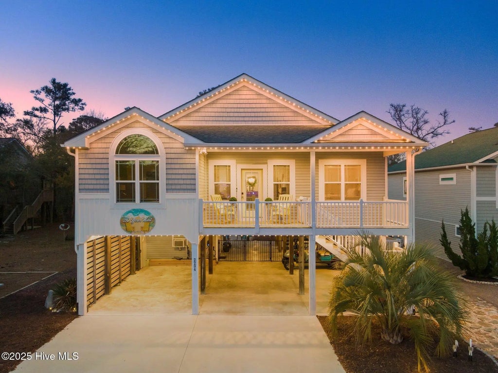 This beautifully maintained 3-bedroom, 2 1/2 bathroom home, built in 2018, boasts 1,798 square feet of living space. With its curb appeal, manicured lawn, and ample under-house parking, this home exudes coastal elegance from the moment you arrive. Ascend the stairs to a rocking chair front porch, perfect for morning coffee or an evening glass of wine. The bright and airy living room features upgraded LVP floors throughout. The gorgeous kitchen boasts granite countertops, subway tile backsplash, upgraded white cabinetry, Whirlpool appliances, and a large pantry, seamlessly overlooking a charming dining area with sliding glass doors leading to a screened deck. The spacious master suite features vaulted ceilings, a transom window, a large walk-in closet, and a luxury en-suite bathroom with dual vanities, a dreamy soaking tub, and a separate tiled walk-in shower. Two additional bedrooms share a well-appointed full bathroom. A full-size washer and dryer are tucked into a kitchen closet with additional cabinet storage. The screened deck opens to an open-air deck overlooking the fully fenced backyard—a private oasis featuring a stunning low maintenance SALT WATER HEATED IN-GROUND POOL, hot tub, and outdoor shower. Downstairs, you'll find a convenient half-bathroom, a heated and cooled flex space with 234 sq ft, and a shed for extra space. An added bonus is that the home is wired for an electric car charger and a 30-amp RV hookup! To make your beach journeys even more convenient, this home comes complete with its own full-size golf cart. While you may never want to leave home, this property is ideally located just a short distance from the beach, local shops, and restaurants. Whether you're looking for a primary residence, vacation home, or investment opportunity, this home is an absolute must-see!