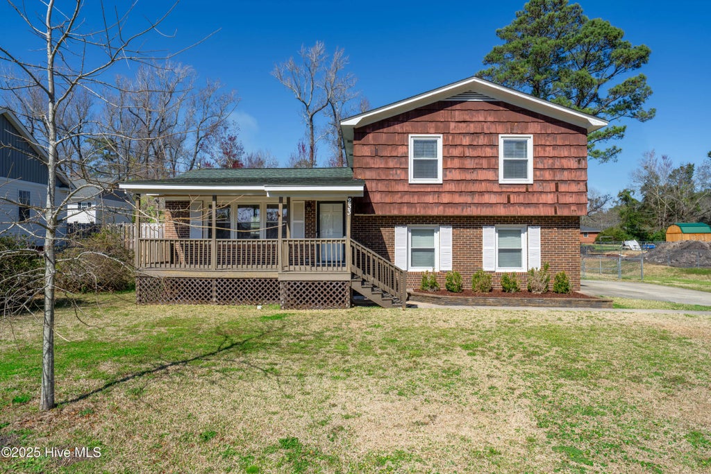 Welcome to 233 Heritage Park Drive, a beautifully maintained 3-bedroom, 2-bath split-level home offering the perfect blend of comfort, convenience, and outdoor enjoyment. Situated on a spacious 0.46-acre lot with no HOA, this property provides the freedom and space you've been looking for! Step inside to discover a bright and inviting home with modern updates throughout. The kitchen has been updated with new quartz countertops, a stylish backsplash, and a new range hood. Adjacent to the kitchen is the dining room and living room, open flowing together. A portion of the interior has been freshly painted, enhancing the home's modern feel. The step-down great room with a cozy fireplace, is perfect for relaxing or entertaining. Outdoor living is a dream with a large covered front porch, a covered back patio, and a fully fenced backyard with a double gate —ideal for gatherings or just enjoying the Carolina sunshine. Cool off in your private pool, complete with a new pool pump. Plus, the 12' x 24' wired workshop and temperature-controlled one-car attached garage provide excellent space for storage, hobbies, or a home workshop. Additional backyard highlights are a playhouse and chicken coop. Further upgrades include crawl space encapsulation, new thermostats, new backyard garage door. All of this, just less than 10 minutes from Downtown Wilmington and 15 minutes to Wrightsville Beach! Don't miss out on this incredible opportunity—schedule your showing today!