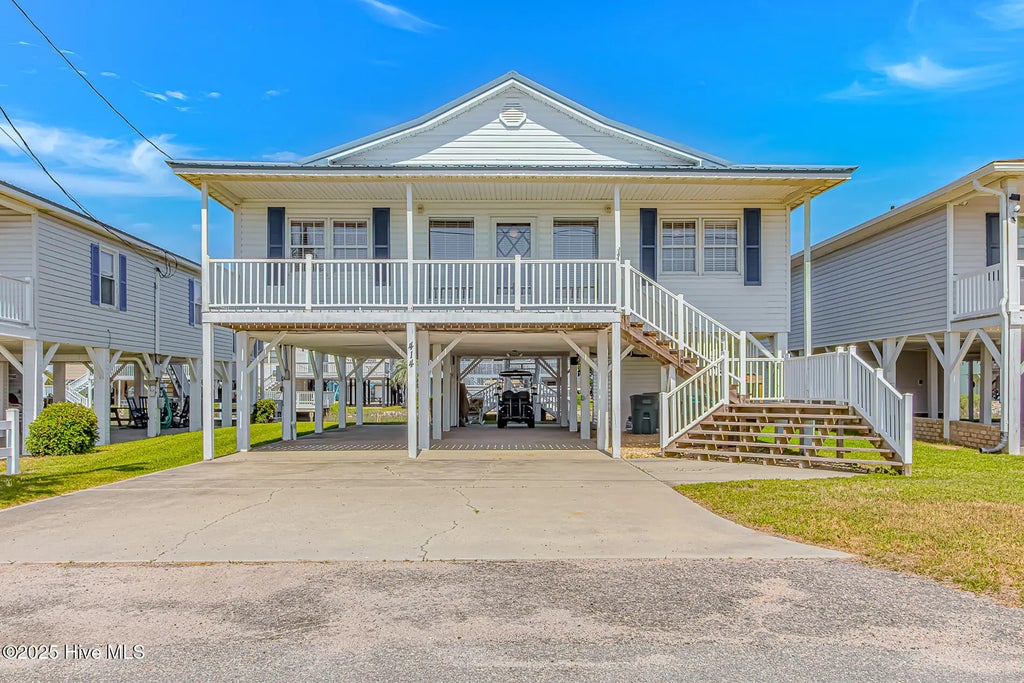 Step into your dream coastal retreat in the charming Cherry Grove Beach section of North Myrtle Beach! This vibrant raised beach home, lovingly maintained by the same owner for 35 years and never rented, exudes a nostalgic 1970s beach chic vibe, capturing a cool, laid-back coastal charm. Featuring four spacious bedrooms, two full bathrooms, and an additional outdoor shower, this home is designed for comfort and convenience. Just two blocks from the sun-kissed shores, you are moments away from sandy toes and rolling waves. Nestled on a serene waterfront canal lot, this property is a paradise for fishing and crabbing, complete with a private dock and seawall. Sip your morning coffee on the inviting covered front porch, soaking in breathtaking marsh views teeming with wildlife. The finished sunroom seamlessly blends indoor comfort with scenic beauty, while the vaulted living room ceiling enhances the airy, open feel. Downstairs, enjoy a large area for parking, grilling, or entertaining, plus convenient laundry facilities. With a durable metal roof and no HOA, this home offers low-maintenance coastal living. Located three blocks from the iconic Cherry Grove Pier and surrounded by vibrant shopping and dining, it's the perfect beach getaway, second home, or profitable rental opportunity. Embrace the spirit of coastal living in this North Myrtle Beach treasure!