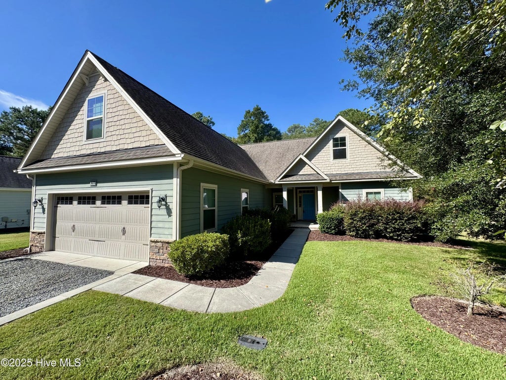 Located in the highly desirable Tidewater community of Ocean Isle Beach, this custom-built home features 4 bedrooms, 2 bathrooms, high-end upgrades, and a carefully considered design. Hardwood floors adorn the main living areas, complemented by a granite kitchen with wood-stained cabinets, a convenient pass-through window in the kitchen, a central island, and sophisticated tray ceilings. The living room features custom-built-ins and a fireplace with a beautiful ornate mantle. Three bedrooms are located on the first floor, including a spacious primary suite that opens to a private backyard. The primary bathroom is equipped with two large walk-in closets, tub and shower, along with a private water closet. A large room above the garage serves as the fourth bedroom or an extra space for versatile use! Tidewater offers charming brick paver streets, a community fire pit, pier, and serene water views—all with low HOA fees. Conveniently located near Brunswick County beaches, shopping, and medical facilities. This home is located 4 miles from the white sands of Ocean Isle Beach! The charming coastal community of Tidewater is a great place to call home. Assumable VA Loan with a low interest rate for buyers that qualify.