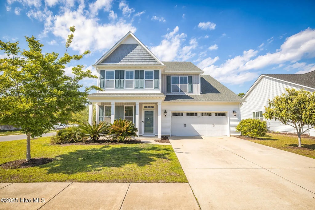 BACK ON MARKET NO FAULT OF SELLER **Just 4 Miles from Carolina Beach - Your Coastal Retreat Awaits!** This spacious and stylish 5-bedroom, 3.5-bath home is perfectly positioned on a desirable corner lot just minutes from the beach. Nestled beside a quiet retention pond, this property offers the ideal blend of comfort, privacy, and coastal convenience. The ground-floor primary suite is a true retreat, featuring a large walk-in closet with custom shelving, a built-in desk, and a private ensuite bath. Upstairs, you'll find four generously sized bedrooms plus a versatile bonus room—perfect for a home office, media room, or play space. Modern LVP flooring flows throughout the main living areas, while the freshly painted walls and brand-new carpet in the primary bedroom create a crisp, move-in-ready feel. The fenced backyard is made for laid-back coastal living, complete with a patio, firepit, lush lawn ready for hammocks, and a private outdoor changing room—perfect after a day at the beach. Additional features include low-maintenance siding, a 2-car garage, upgraded landscaping, irrigation system, and more. **This is the beach lifestyle—made easy. Don't miss your chance to live just minutes from the sand and surf!**
