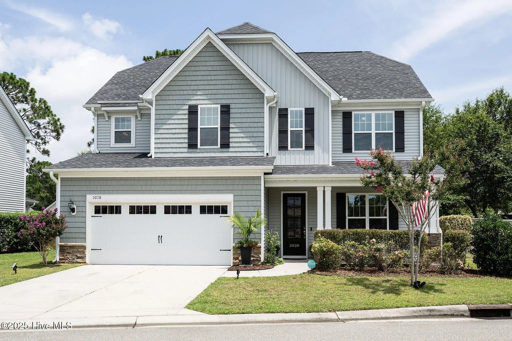 You will love this exceptional - move-in ready, 3-bedroom and 2.5-bath home in sought after Laurenbridge! The home's excellent curb appeal is accentuated by a rocking chair front porch, varied textures of exterior cladding including attractive stacked stone and a manicured landscape. Quality built by Robuck Homes, the floorplan offers a spacious, open design concept. The kitchen boasts stainless appliances, hard surface countertops with complimenting backsplash, a center island with bar seating, and a pantry. The first floor incorporates a spacious living room with a gas fireplace, plank flooring, and a downstairs home office with French doors. On the second floor, a landing provides a loft area - perfect for a den, playroom or media room. The primary bedroom suite is a retreat of its own; it has abundant windows and a spacious layout - suitable for a king-size bed. The adjoining primary bathroom is generously sized and encompasses a two vanities, a soaking tub, separate shower with built-in seating and an impressive walk-in closet. The two additional upstairs bedrooms are equally well-appointed and share a bathroom. Other features include a laundry room, patio, fenced backyard, 2-car garage and community boat storage. Laurenbridge is conveniently located in the Masonboro area and is near shopping, dining and minutes from Carolina Beach. Welcome home!