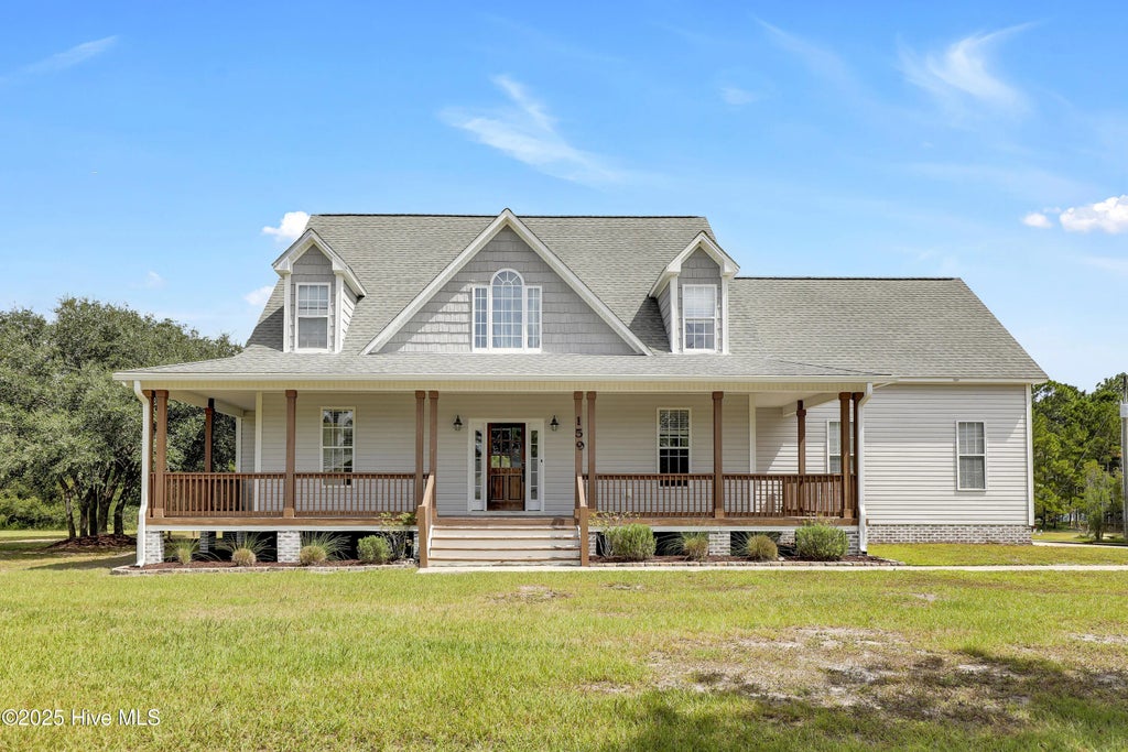 Opportunities like this don't come along often! This beautiful 2,650 heated square foot home offers the perfect blend of space, privacy, and charm, all tucked away on nearly 2 acres in a peaceful and private setting. With no HOA, you'll have the freedom to truly make this property your own—all while enjoying the convenience of being just off Highway 17 with easy access to town, schools, and shopping. This move-in ready home has been thoughtfully updated with fresh interior paint, new carpet, and newly sanded and stained hardwood floors in 2025. Inside, you'll find 3 bedrooms plus two spacious bonus rooms. The main level showcases newly refinished hardwood floors and a stunning two-story cathedral living room ceiling with a catwalk overlooking from the upstairs bedrooms, creating an open and dramatic centerpiece to the home. A cozy gas log fireplace anchors the space, while a large slider opens to the expansive backyard, filling the room with natural light. The kitchen features a large island, abundant cabinetry, a breakfast nook, and convenient access to the laundry/mud room that leads directly to the two-car garage. The formal dining room flows seamlessly from both the kitchen and living room, making it perfect for gatherings and entertaining. The first-floor owner's suite is a true retreat with a large walk-in closet, private slider to the rear deck, and a refreshed en-suite bath completed in September 2025 featuring a walk-in shower, water closet, 7-foot double vanity, and linen closet. Upstairs, you'll find two additional bedrooms, a full bath, a hall linen closet, walk-in attic storage, and the first of two bonus rooms. The second bonus room—an oversized 24x14 space—is privately tucked behind the kitchen with its own separate stair access, making it an ideal office, media room, or guest suite. Outdoors, you'll fall in love with the wraparound front porch, perfect for relaxing with morning coffee, and the large, expansive rear deck, ideal for entertaining or