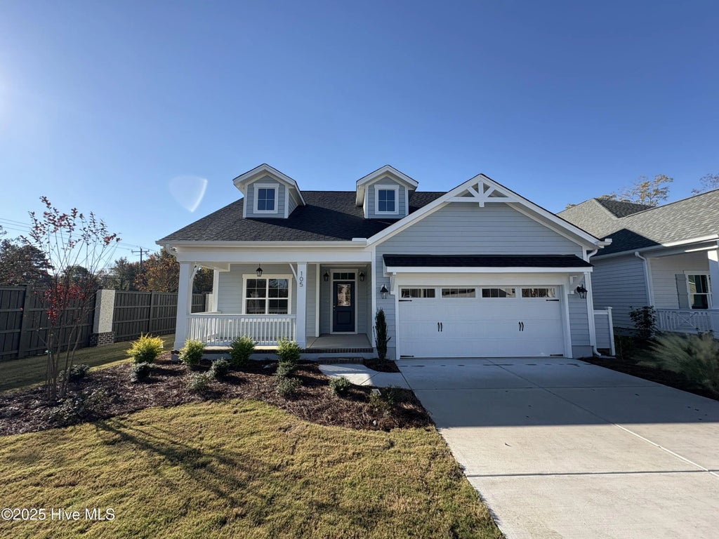 The beautiful Beckett Home Plan in the Traditional Elevation is a spacious 2223 square feet all on one story. Three bedrooms all with an ensuite bath, a powder room for guests and room for entertaining in the open concept great room, kitchen and dining area. Upgrades to this home include crown molding in main living areas, exposed painted beams in great room, white wood shelving in owners closet and pantry, 8'0 center meet sliding door from great room to covered porch, bench with hooks in foyer, upgraded tile in baths, drop in tub with tile surround in owners bathroom, frameless glass shower door in owners bath and upgraded interior lighting package.