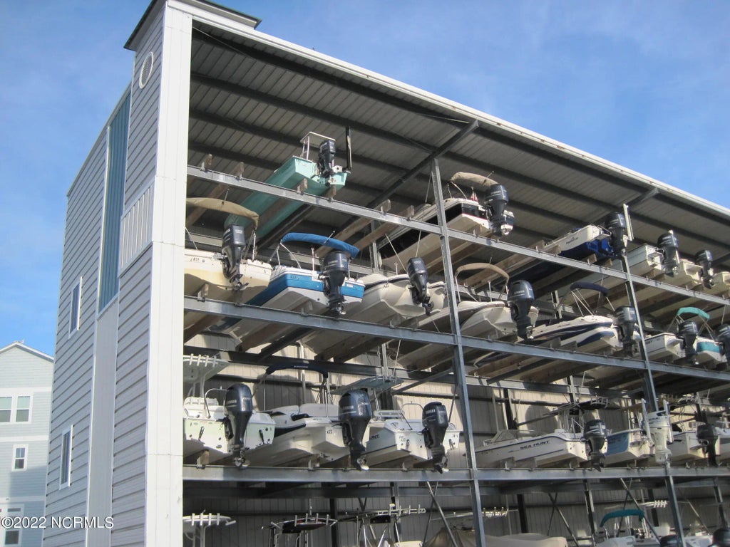 Dry Slip H11 at Topsail Island Yacht Club is on the desirable ground level and the dimensions are 28 feet long, 9 feet 6 inches wide, 10 feet high. The slip can handle a maximum weight of 15,000 pounds. Take the worry out of boating. The staff will take care of launching and retrieving your boat while you relax on the spacious decks or lounge by the pool. Watch sunsets from the top floor deck. Best view in Surf City.