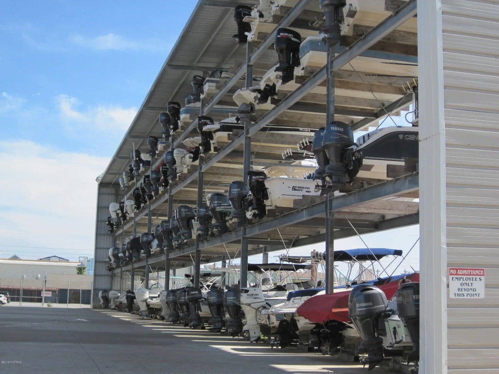 Dry Slip I21 at Topsail Island Yacht Club is on the second level and the dimensions are 35 feet long, 9 feet 6 inches wide, 10 feet 9 inches high. The slip can handle a maximum weight of 10,000 pounds. This is the largest roofed dry slip in the area. Take the worry out of boating. The staff will take care of launching and retrieving your boat while you relax on the spacious decks or lounge by the pool. Watch sunsets from the top floor deck. Best view in Surf City.