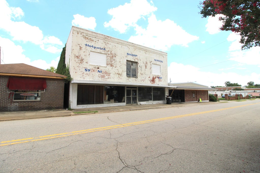 Stately building, once used for furniture store and had living quarters upstairs. Large showroom in the front, LOTS of storage room in the back, and upstairs warehouse space could be utilized for storage or renovated to accomodate any number of options. Central downtown location in charming Waynesboro, Georgia lends it to a host of options, from retail to restaurant. Many possibilities and mega-character...