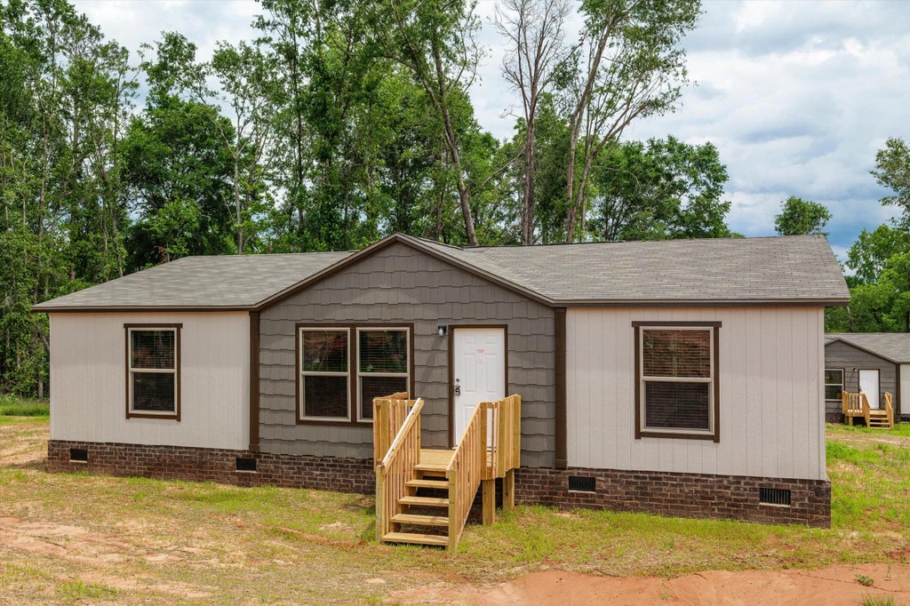 Brand New 3BR/2BA Home on 1.26 Acres - Move-In Ready! Welcome to your new home! This brand-new mobile home features 3 spacious bedrooms and 2 full bathrooms, thoughtfully placed on a 1.12-acre lot for extra space. Built on a solid brick foundation, this home blends comfort, functionality, and long-lasting quality. Inside, you'll find an open-concept living area and a modern kitchen equipped with stainless steel appliances—including the refrigerator. Enjoy the outdoors from both the front and back porches, perfect for relaxing or entertaining under the open sky. With plenty of yard space for gardening, recreation, or adding future improvements, this property is a rare opportunity to enjoy peaceful living in a brand-new home.
