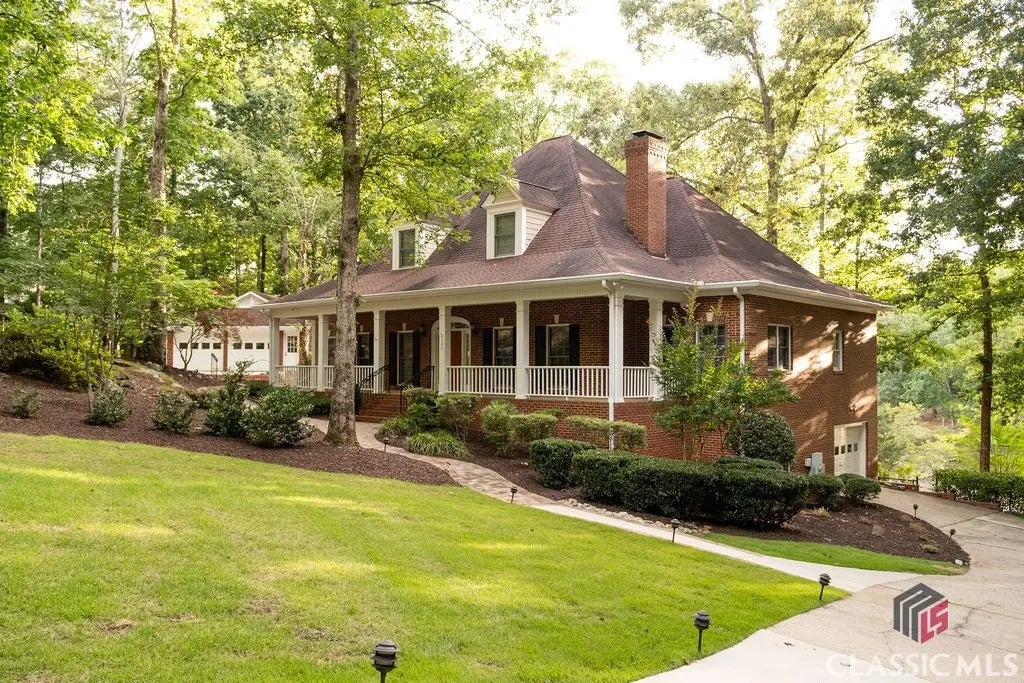 Lakeside Living Retreat—-A rare, sought-after find in Athens, the coveted Shoal Creek community boasts limited lake living opportunities and this custom beauty is not only one of the few that boasts a picturesque lakeside setting, but also offers an amazing level rear yard to help you enjoy it all!! Upon approach the ethereal backdrop is stunning—set with custom landscaping, brick walkways, dual driveways, detached 2-car garage, and wrap-around front porch all drawing you in. Not your everyday plan, this expansive footprint was custom designed to not only provide ample space for room to expand, but was also crafted to enjoy sparkling lake views from many angles. Welcomed by the formal layout, the foyer is flanked by a spacious formal dining room that could easily seat 8+ and a grand living room with central, marble-accented fireplace commanding the space. Tucked away off the living room is the ideal home office or study, perfectly sunlit. By now you’ve noticed several desirable features that appoint this lovely home, such as; 10ft. ceilings, hardwood and ceramic tile floors, new upgraded plush carpet, extensive trim and moldings package, decorative light fixtures-many with dimmers, double paned windows, floored attic storage options, and more. Serving lake house vibes, the entertainer’s kitchen overlooks the sunroom styled breakfast room and keeping room engulfed with views of the lake. Well-equipped, the spacious kitchen features 360’ of custom cabinets, sprawling granite counters that extend to the breakfast bar, tile backsplash, double-basin, under-mount sink with instant hot water dispenser, large pantry with shelving, and a complete appliance package including wall oven. The cozy keeping room boasts a masonry fireplace flanked by custom builtins, and is the heart of the home where many memories will be shared. Down the hallway you will find many conveniences like the laundry room complete with utility sink, powder room perfect for guests, access to the terrace level and tucked away at the end, the private owner’s suite. A true retreat, this oversized primary bedroom offers ample space for large furniture, multiple spacious closets, ensuite full bath and of course lake views. Start your morning off right with the picture windows reflecting the lake in the primary lavatory, or enjoy a bubble bath for added relaxation. Ascend the stairs to find 3 additional bedroom options, plus 2 full baths. The upper level also houses an additional bonus space or home office that provides access to stairs leading to the 3rd floor attic storage. If you enjoy entertaining, in need of room to expand or looking for inlaw suite potential the finished terrace level is ready to serve. Boasting an oversized rec. room, wet bar with cabinets perfect for a kitchenette, full bath, lower level garage and exterior access, this daylight basement provides upgraded amenities that allow the space to be utilized in many ways. The desirable features continue to the exterior where you can enjoy year-round living with the screened porch or enjoy dining al-fresco lakeside on the oversized rear patio. Follow one of the stone or concrete paths to the fenced rear yard, lower level patio, and banks of the lake to relish in a little afternoon fishing. The exquisite scene this 1.01 acre lot exudes must be seen in person to truly appreciate its authenticity and beauty. Welcome home to Millstone Circle.